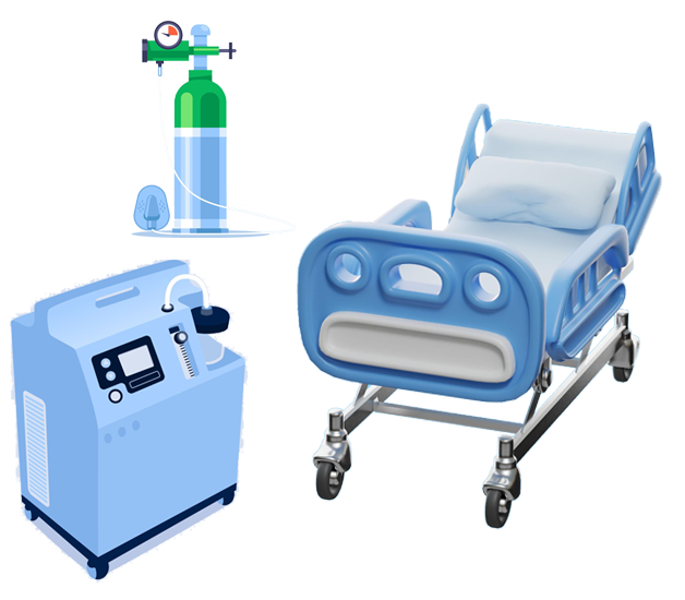 You can have vital medical equipment like oxygen concentrators, medical beds, BIPAP/CPAP machines, oxygen cylinders, ventilators, and trained professionals delivered straight to your home.